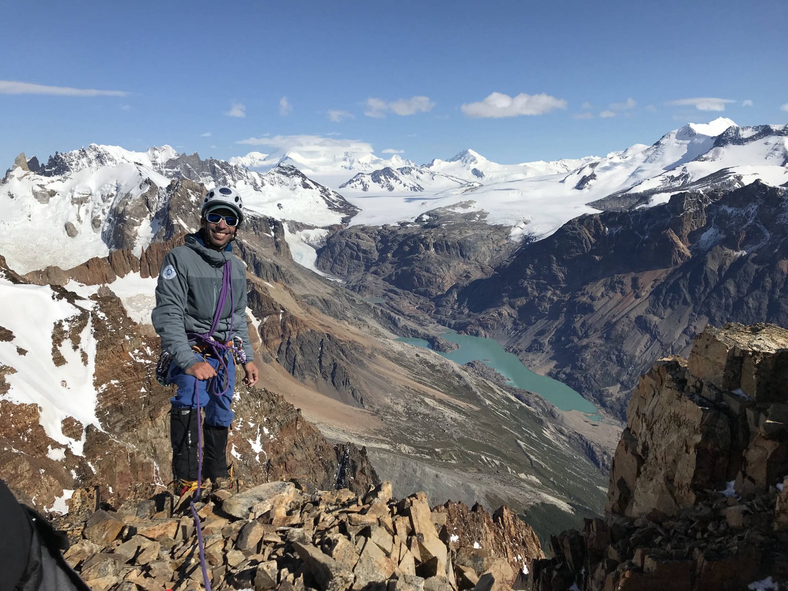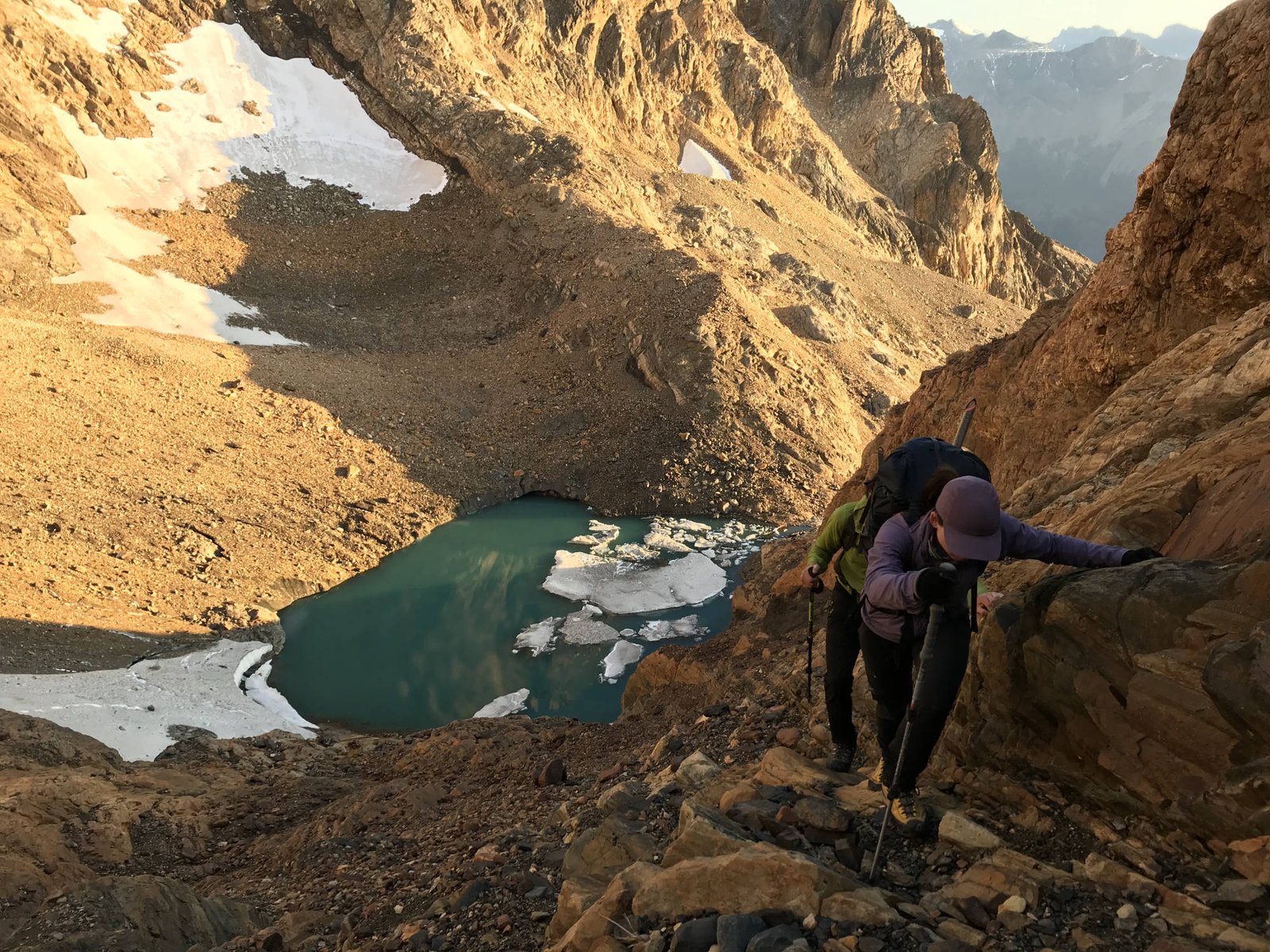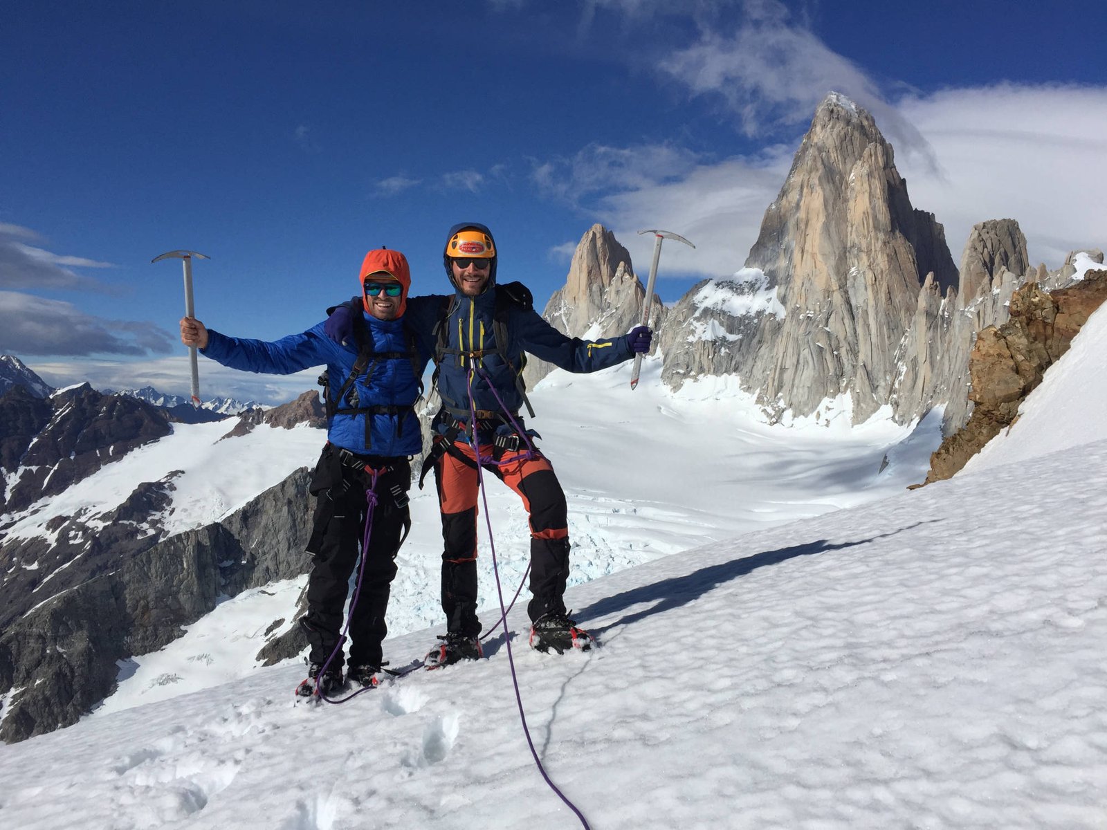 We will drive at 4-5am in the morning to Río Eléctrico (about 10 miles on gravel road). From there, we will start hiking on the trail to “Piedra del Fraile” for the first 30min, and then we'll head up off the trail trough a dry canyon and steep slope, until we reach the base of the Glacier. The terrain is very steep, and usually requires the use of crampons and rope at some point. Once at the Glacier, we will put on crampons and continue the ascent with a rope up to the summit of Cerro Eléctrico (2257m). The views of Fitz Roy and Piedras Blancas Glacier from the shoulder and the summit are astonishing! After a lunch break and photos, we'll head back the same way to Río Eléctrico and drive to El Chaltén. The activity takes about 12 hours, with a vertical gain of 1700 meters and snow slopes between 30º-40º.